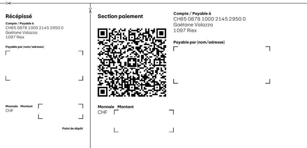 Paiement au comptant sur place, par TWINT ou par versement pour le compte de:
